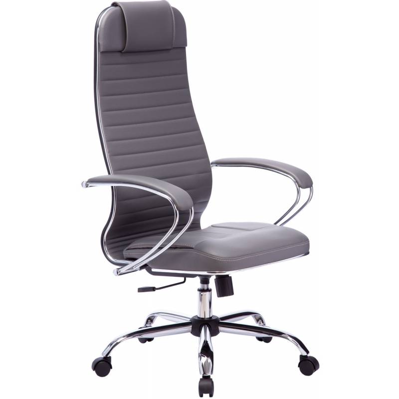 Эргономичное кресло руководителя Метта комплект 6 серая перфорированная кожа. Фото товара с разных ракурсов.